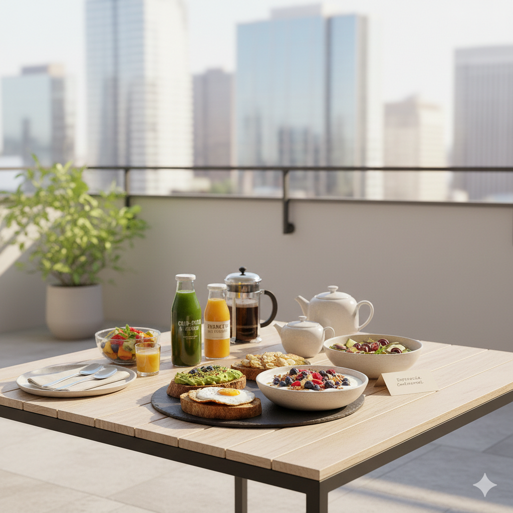 Eleva tus mañanas con una selección curada de la más alta calidad. Nuestro servicio de Brunch/Desayuno Continental redefine el concepto de "comida a domicilio", priorizando la frescura y el sabor artesanal en cada bocado. Nuestra propuesta incluye: Bolería francesa horneada el mismo día (Croissants de mantequilla y Pain au Chocolat). Tabla de quesos maduros y charcutería fina. Fruta de temporada cortada a mano con miel de abeja orgánica. Café de especialidad de origen y jugo natural recién exprimido. ¿Por qué elegirnos? Cuidamos cada detalle estético para que la experiencia sea un deleite visual antes del primer bocado. Ideal para regalos especiales o reuniones de negocios que buscan impresionar.
